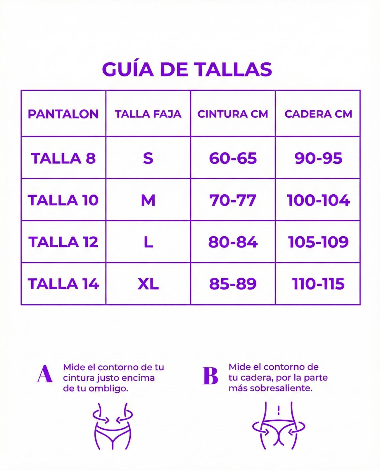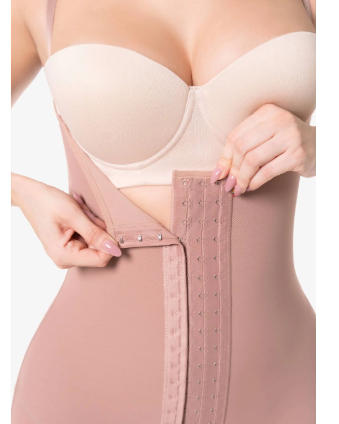 No te preocupes por el ajuste. Revisa nuestra tabla de medidas según tu cintura y cadera. Además, la faja cuenta con 2 a 3 niveles de broches frontales, lo que te permite ajustarla perfectamente a tu cuerpo a medida que te desinflamas o reduces medidas.